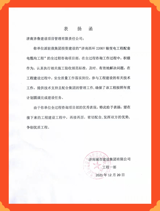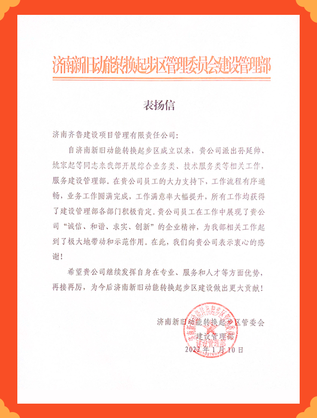 信中對(duì)公司在各項(xiàng)工作中取得的成績給予了充分的肯定,對(duì)各項(xiàng)目團(tuán)隊(duì)和個(gè)人在工作中勇于擔(dān)當(dāng)、任勞任怨的職業(yè)精神給予了高度的贊揚(yáng),對(duì)未來的工作提出了更高的希望。